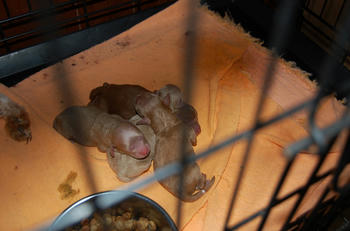 昨晩産まれたばかりのプードルの赤ちゃんです。